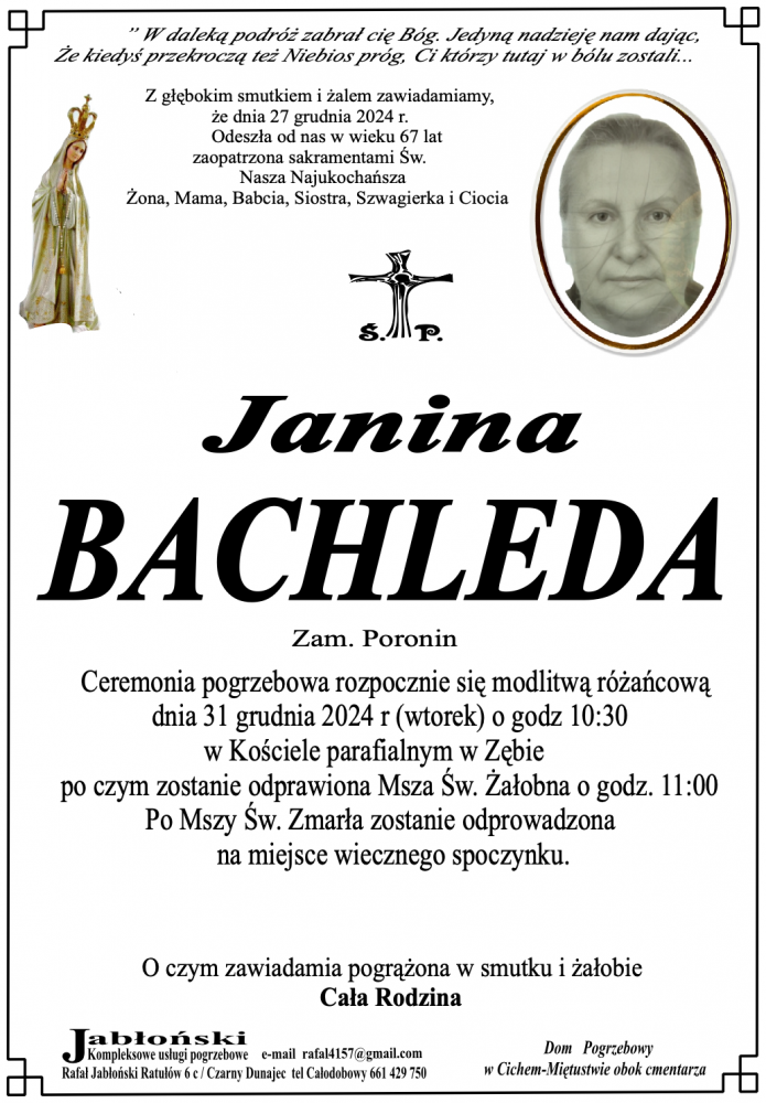 Janina Bachleda - Nekrologi - podhale24.pl