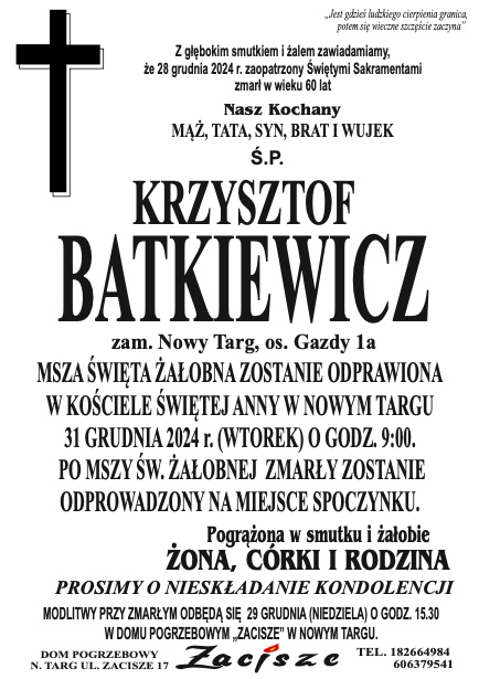 Krzysztof Batkiewicz - Nekrologi - podhale24.pl