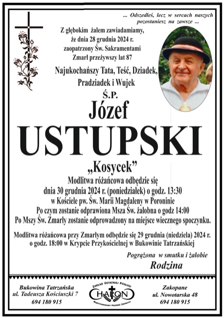 Józef Ustupski - Nekrologi - podhale24.pl
