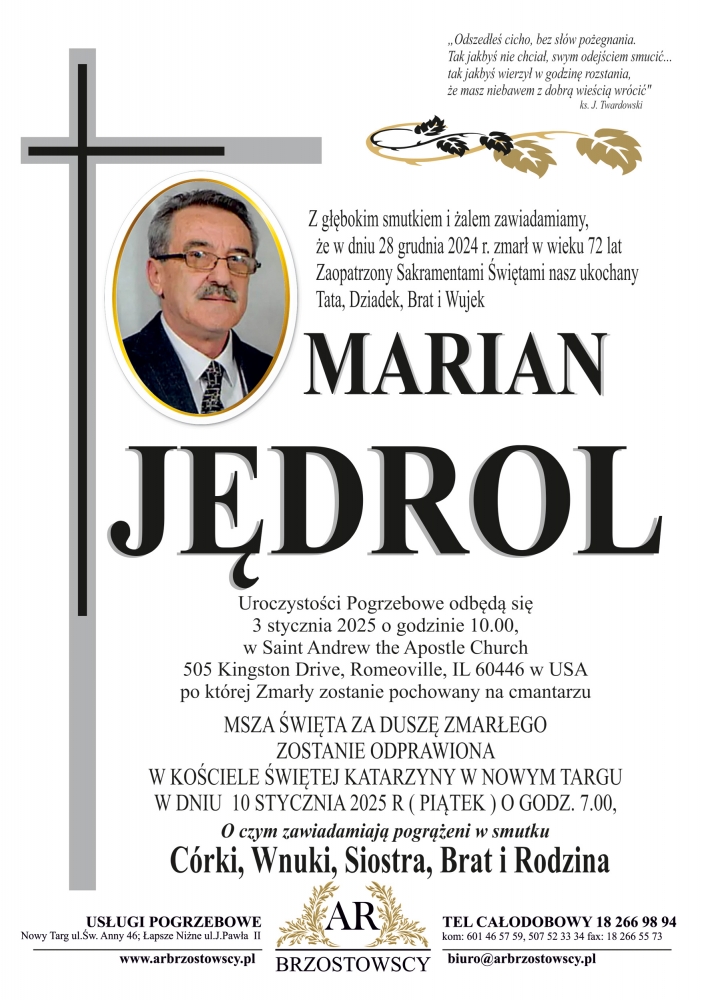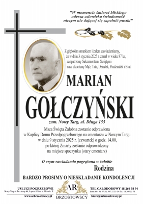 Podhale24.pl zastrzega sobie prawo do nie publikowania wspomnień, w szczególności tych nie związanych z profilem działu nekrologi, zawierających wulgaryzmy, wzywających do zachowań niezgodnych z prawem, obrażających osoby publiczne i prywatne, obrażających inne narodowości, rasy, religie itd, oraz te, bez możliwości telefonicznej lub mailowej weryfikacji ich autora.