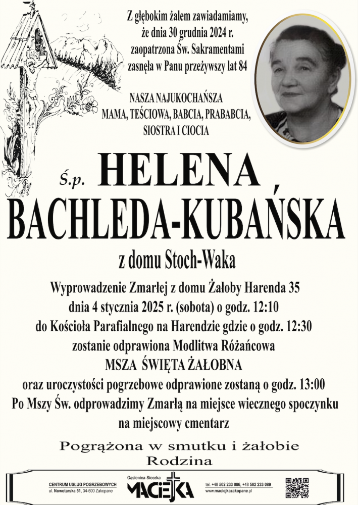 Helena Bachleda-Kubańska - Nekrologi - podhale24.pl