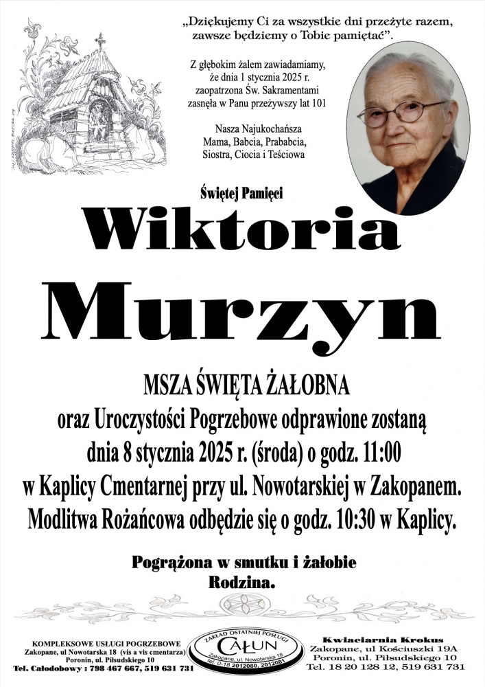 Wiktoria Murzyn - Nekrologi - podhale24.pl
