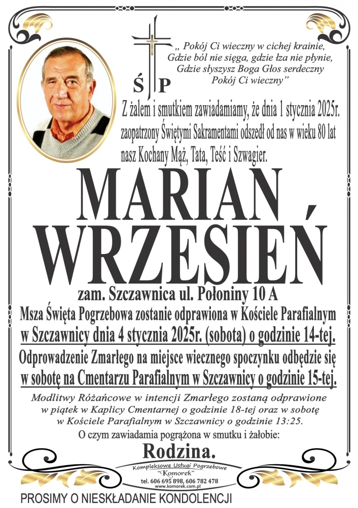 Marian Wrzesień - Nekrologi - podhale24.pl