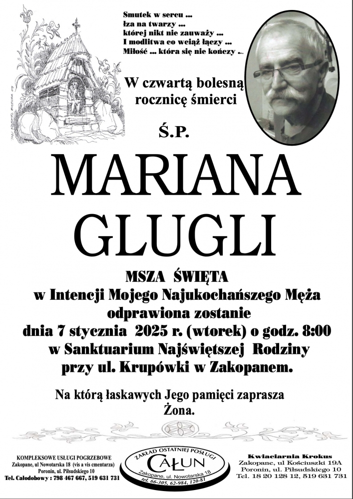 Podhale24.pl zastrzega sobie prawo do nie publikowania wspomnień, w szczególności tych nie związanych z profilem działu nekrologi, zawierających wulgaryzmy, wzywających do zachowań niezgodnych z prawem, obrażających osoby publiczne i prywatne, obrażających inne narodowości, rasy, religie itd, oraz te, bez możliwości telefonicznej lub mailowej weryfikacji ich autora.