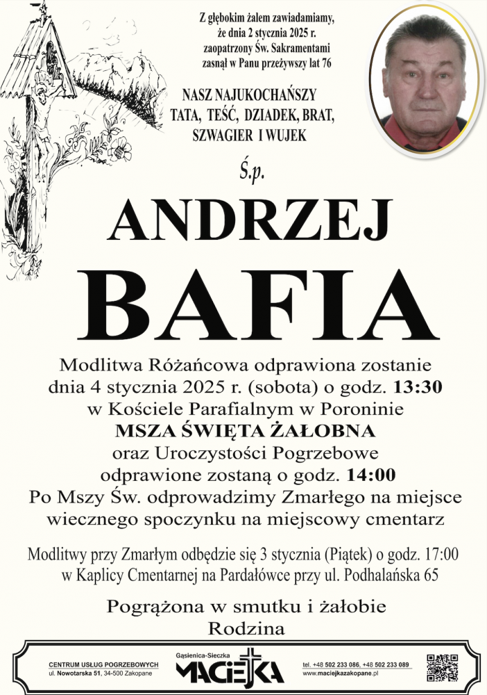 Andrzej Bafia - Nekrologi - podhale24.pl