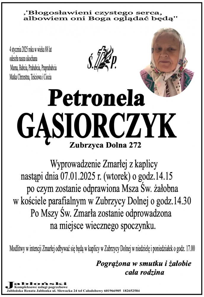 Petronela Gąsiorczyk - Nekrologi - podhale24.pl