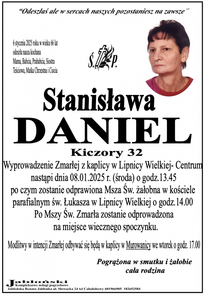 Stanisława Daniel - Nekrologi - podhale24.pl
