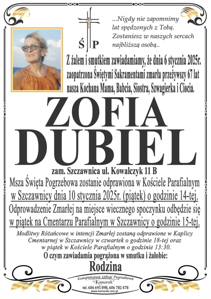 Zofia Dubiel - Nekrologi - podhale24.pl