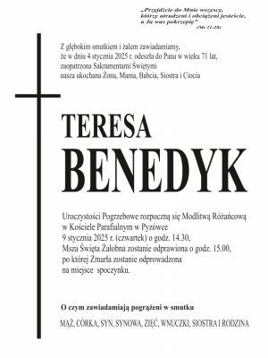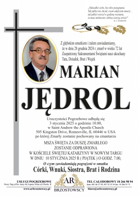 Podhale24.pl zastrzega sobie prawo do nie publikowania wspomnień, w szczególności tych nie związanych z profilem działu nekrologi, zawierających wulgaryzmy, wzywających do zachowań niezgodnych z prawem, obrażających osoby publiczne i prywatne, obrażających inne narodowości, rasy, religie itd, oraz te, bez możliwości telefonicznej lub mailowej weryfikacji ich autora.