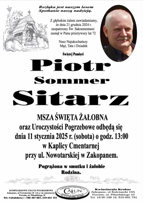 Podhale24.pl zastrzega sobie prawo do nie publikowania wspomnień, w szczególności tych nie związanych z profilem działu nekrologi, zawierających wulgaryzmy, wzywających do zachowań niezgodnych z prawem, obrażających osoby publiczne i prywatne, obrażających inne narodowości, rasy, religie itd, oraz te, bez możliwości telefonicznej lub mailowej weryfikacji ich autora.