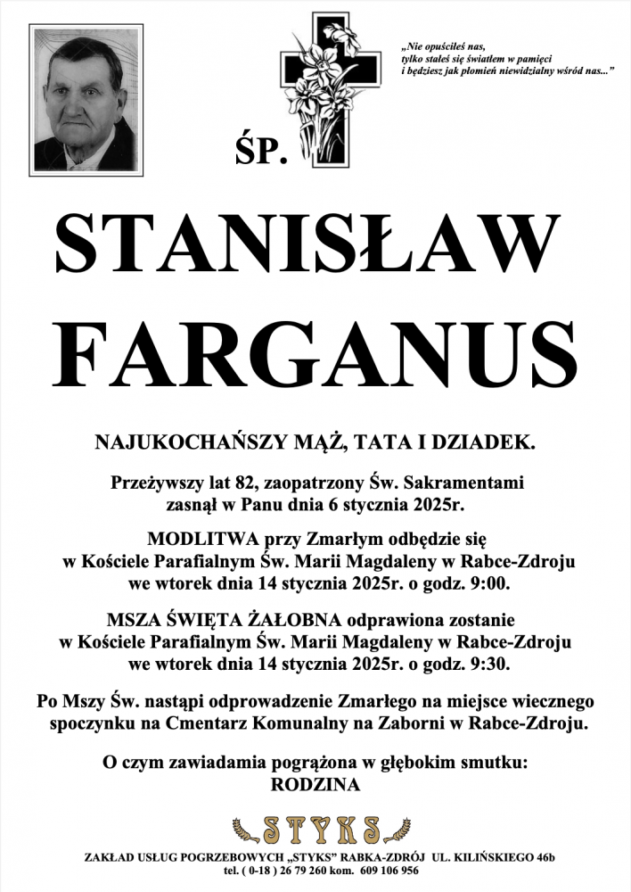 Stanisław Farganus - Nekrologi - podhale24.pl