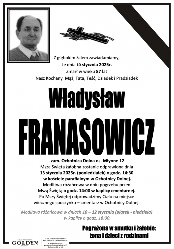 Władysław Franasowicz - Nekrologi - podhale24.pl