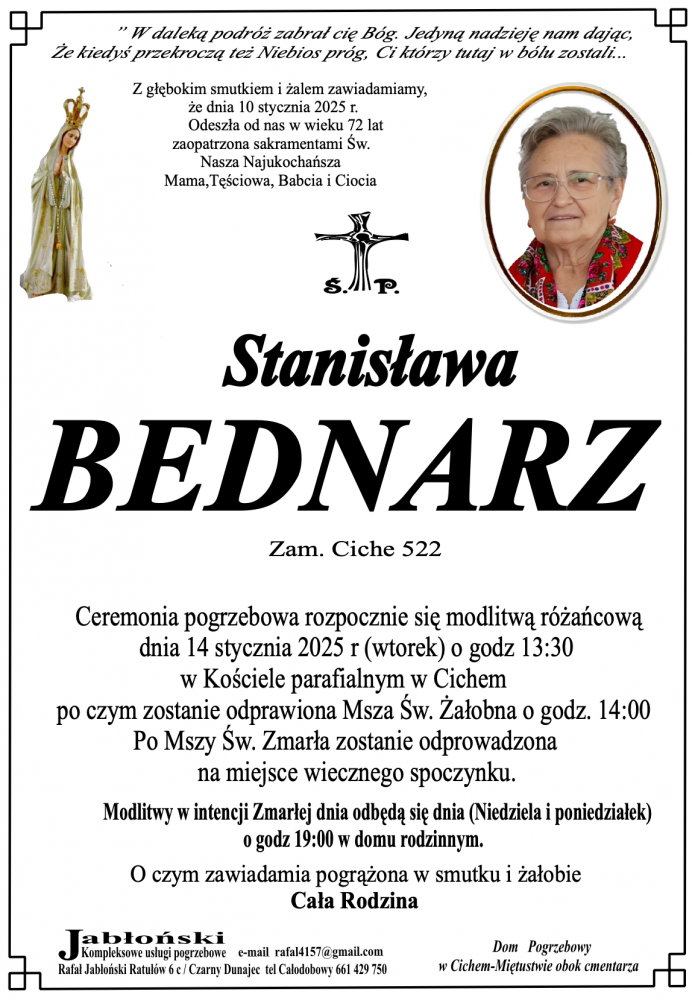 Stanisława Bednarz - Nekrologi - podhale24.pl