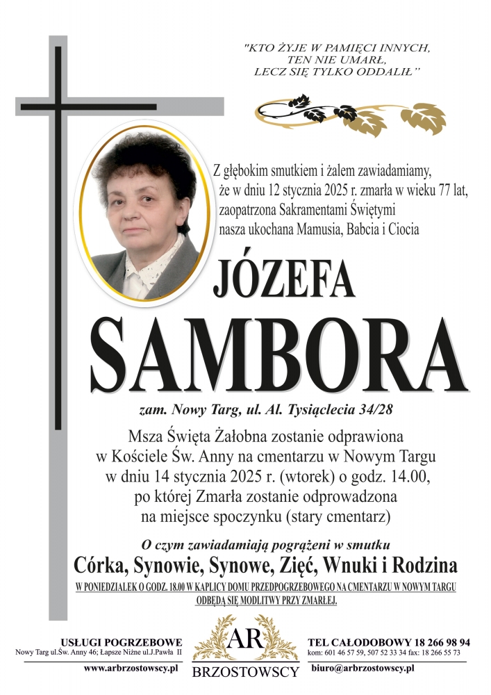 Podhale24.pl zastrzega sobie prawo do nie publikowania wspomnień, w szczególności tych nie związanych z profilem działu nekrologi, zawierających wulgaryzmy, wzywających do zachowań niezgodnych z prawem, obrażających osoby publiczne i prywatne, obrażających inne narodowości, rasy, religie itd, oraz te, bez możliwości telefonicznej lub mailowej weryfikacji ich autora.