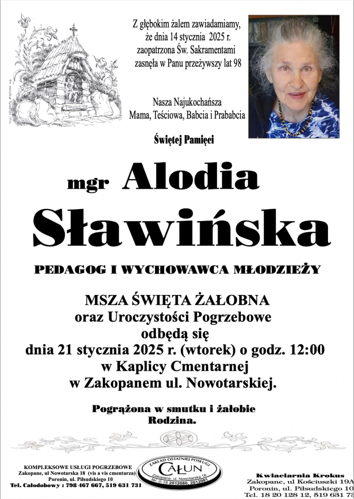 Alodia Sławińska - Nekrologi - podhale24.pl