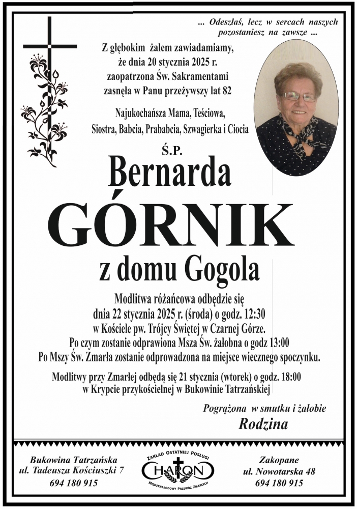 Bernarda Górnik - Nekrologi - podhale24.pl