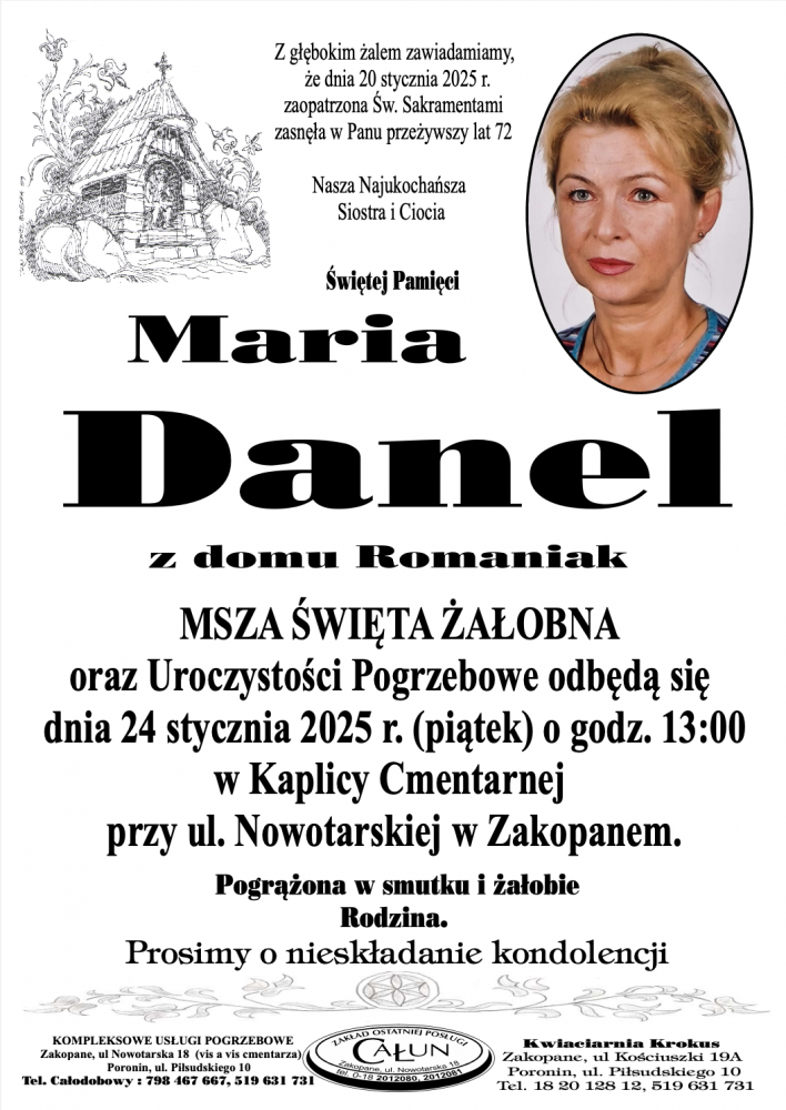 Maria Danel - Nekrologi - podhale24.pl