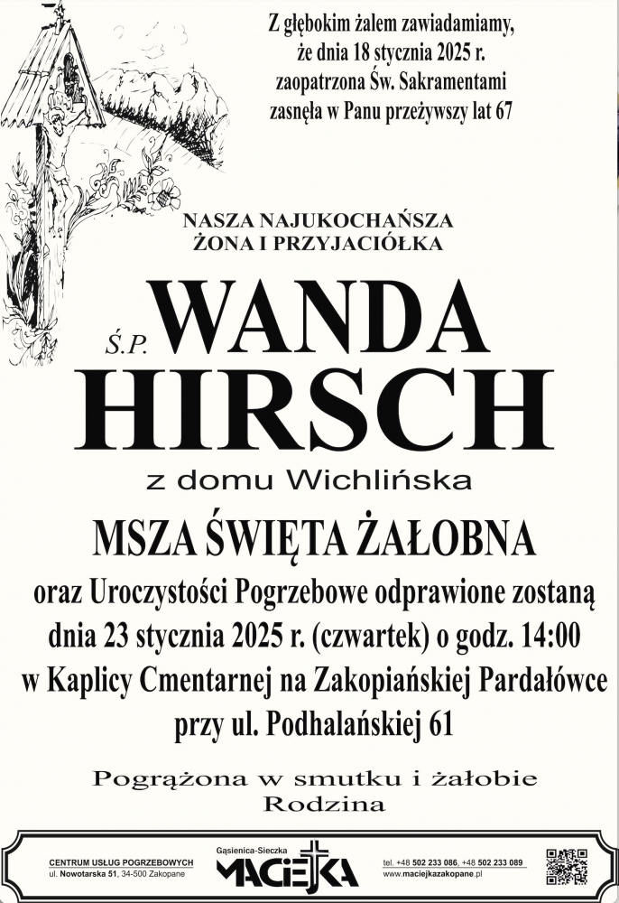 Wanda Hirsch - Nekrologi - podhale24.pl