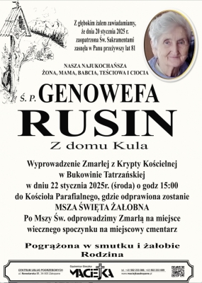 Podhale24.pl zastrzega sobie prawo do nie publikowania wspomnień, w szczególności tych nie związanych z profilem działu nekrologi, zawierających wulgaryzmy, wzywających do zachowań niezgodnych z prawem, obrażających osoby publiczne i prywatne, obrażających inne narodowości, rasy, religie itd, oraz te, bez możliwości telefonicznej lub mailowej weryfikacji ich autora.