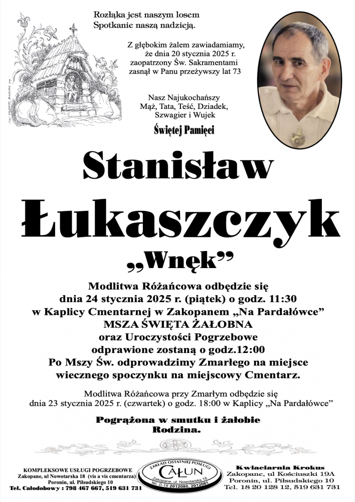 Stanisław Łukaszczyk - Nekrologi - podhale24.pl