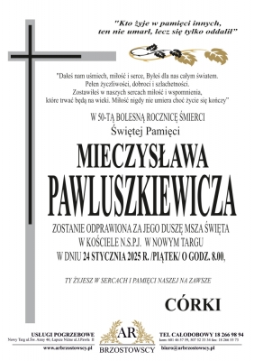 Podhale24.pl zastrzega sobie prawo do nie publikowania wspomnień, w szczególności tych nie związanych z profilem działu nekrologi, zawierających wulgaryzmy, wzywających do zachowań niezgodnych z prawem, obrażających osoby publiczne i prywatne, obrażających inne narodowości, rasy, religie itd, oraz te, bez możliwości telefonicznej lub mailowej weryfikacji ich autora.