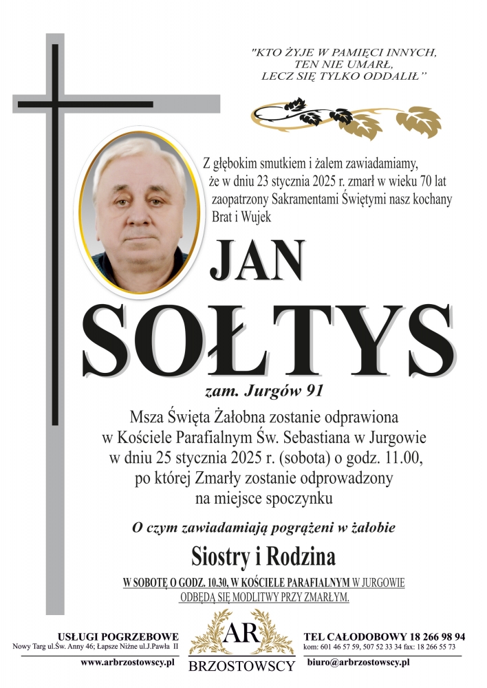 Podhale24.pl zastrzega sobie prawo do nie publikowania wspomnień, w szczególności tych nie związanych z profilem działu nekrologi, zawierających wulgaryzmy, wzywających do zachowań niezgodnych z prawem, obrażających osoby publiczne i prywatne, obrażających inne narodowości, rasy, religie itd, oraz te, bez możliwości telefonicznej lub mailowej weryfikacji ich autora.