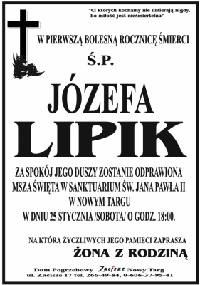 Podhale24.pl zastrzega sobie prawo do nie publikowania wspomnień, w szczególności tych nie związanych z profilem działu nekrologi, zawierających wulgaryzmy, wzywających do zachowań niezgodnych z prawem, obrażających osoby publiczne i prywatne, obrażających inne narodowości, rasy, religie itd, oraz te, bez możliwości telefonicznej lub mailowej weryfikacji ich autora.
