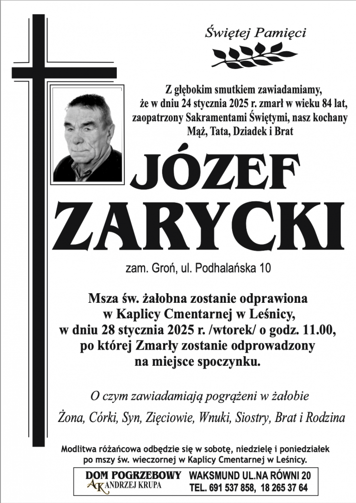 Podhale24.pl zastrzega sobie prawo do nie publikowania wspomnień, w szczególności tych nie związanych z profilem działu nekrologi, zawierających wulgaryzmy, wzywających do zachowań niezgodnych z prawem, obrażających osoby publiczne i prywatne, obrażających inne narodowości, rasy, religie itd, oraz te, bez możliwości telefonicznej lub mailowej weryfikacji ich autora.