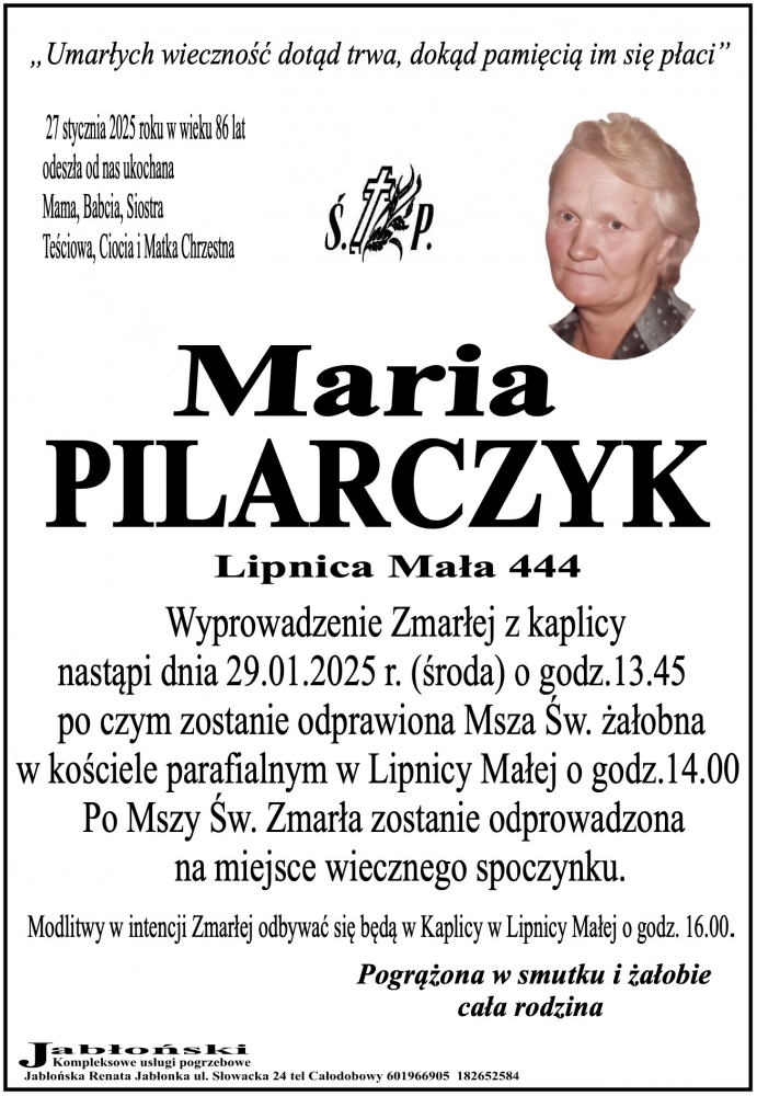 Maria Pilarczyk - Nekrologi - podhale24.pl