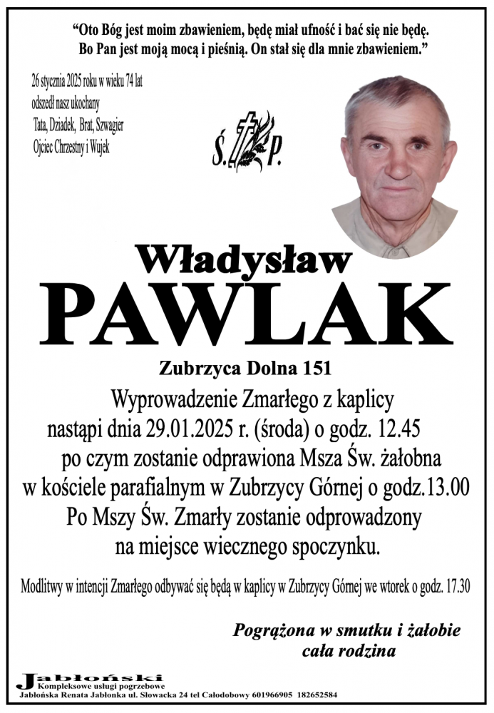 Włądysław Pawlak - Nekrologi - podhale24.pl