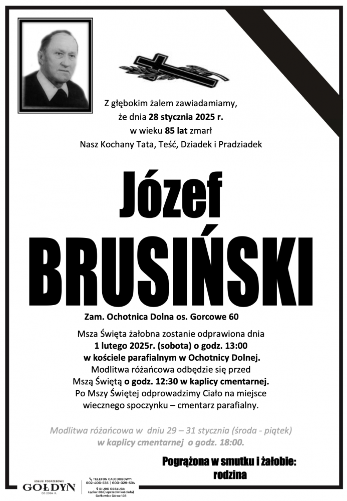Podhale24.pl zastrzega sobie prawo do nie publikowania wspomnień, w szczególności tych nie związanych z profilem działu nekrologi, zawierających wulgaryzmy, wzywających do zachowań niezgodnych z prawem, obrażających osoby publiczne i prywatne, obrażających inne narodowości, rasy, religie itd, oraz te, bez możliwości telefonicznej lub mailowej weryfikacji ich autora.