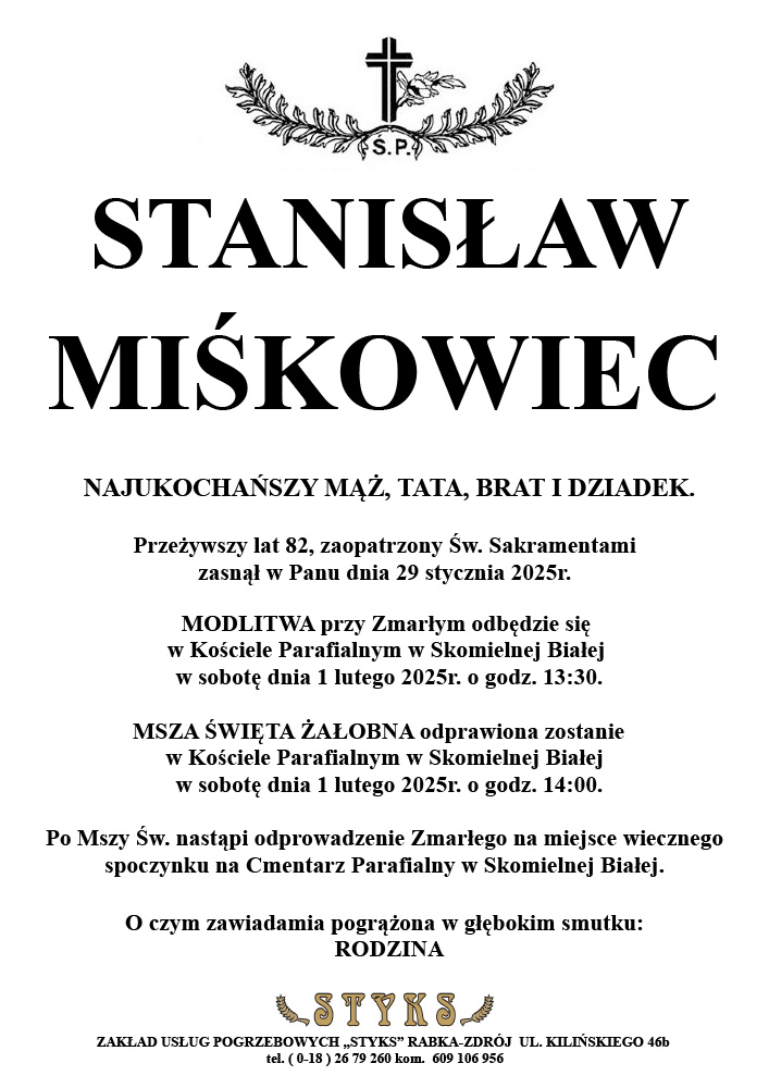 Stanisław Miśkowiec - Nekrologi - podhale24.pl
