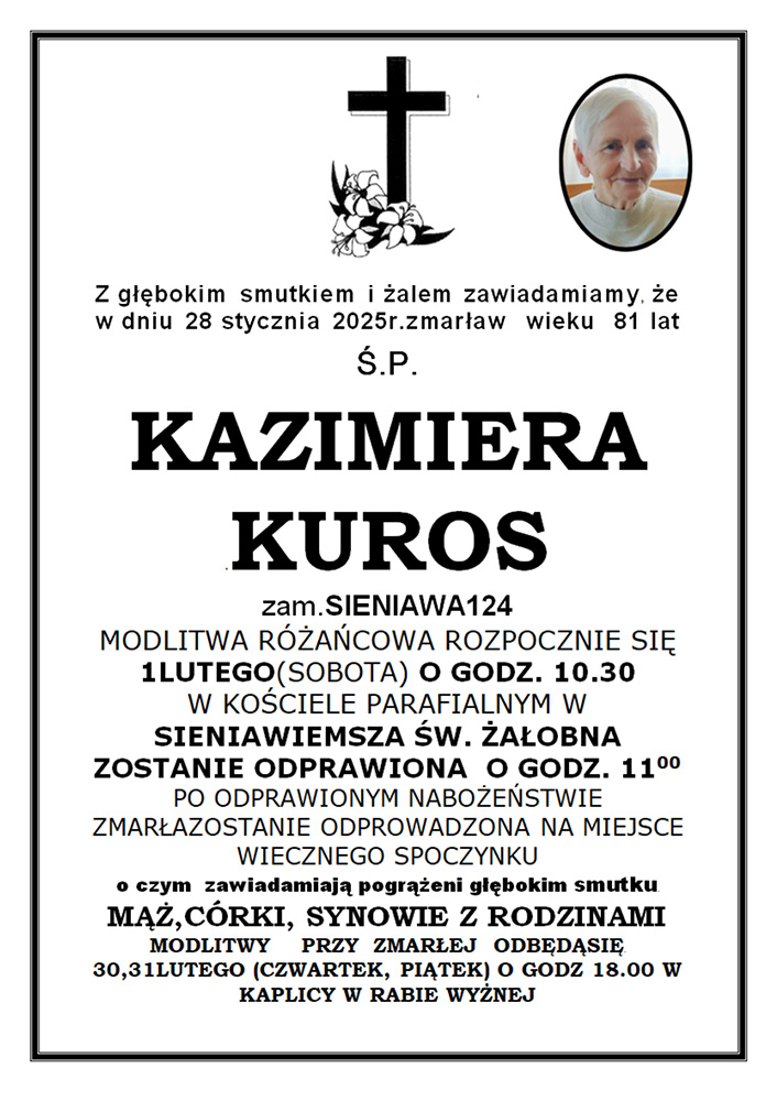 Kazimiera Kuros - Nekrologi - podhale24.pl