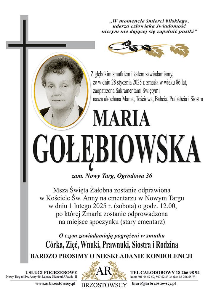 Maria Gołębiowska - Nekrologi - podhale24.pl