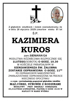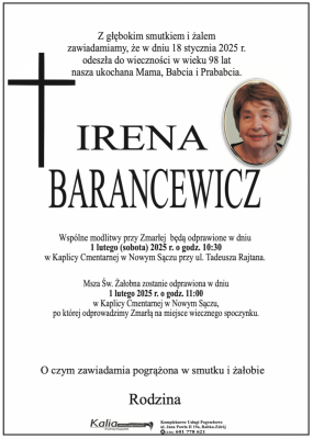 Podhale24.pl zastrzega sobie prawo do nie publikowania wspomnień, w szczególności tych nie związanych z profilem działu nekrologi, zawierających wulgaryzmy, wzywających do zachowań niezgodnych z prawem, obrażających osoby publiczne i prywatne, obrażających inne narodowości, rasy, religie itd, oraz te, bez możliwości telefonicznej lub mailowej weryfikacji ich autora.
