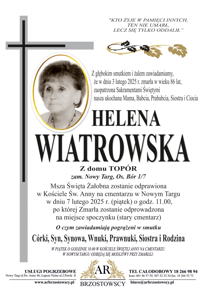 Helena Wiatrowska - Nekrologi - podhale24.pl