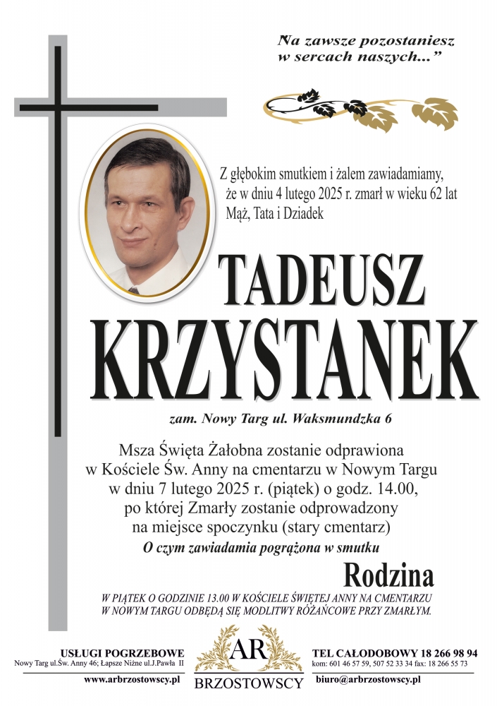 Tadeusz Krzystanek - Nekrologi - podhale24.pl