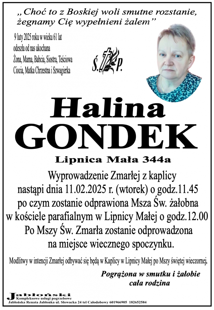 Halina Gondek - Nekrologi - podhale24.pl