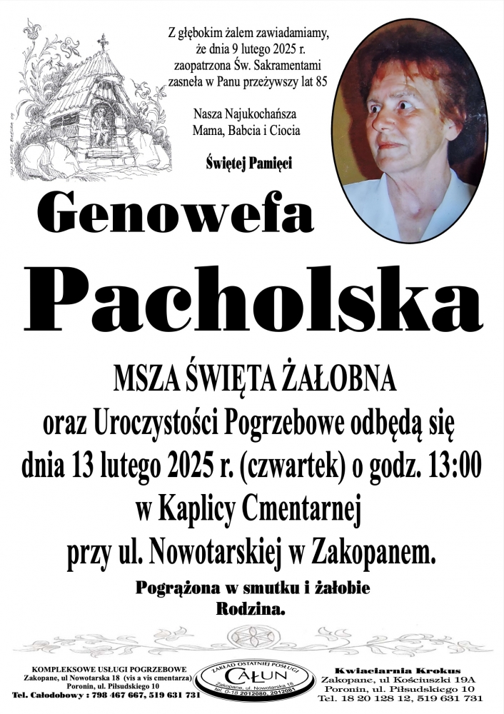 Genowefa Pacholska - Nekrologi - podhale24.pl