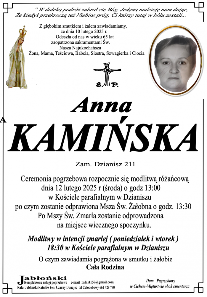 Podhale24.pl zastrzega sobie prawo do nie publikowania wspomnień, w szczególności tych nie związanych z profilem działu nekrologi, zawierających wulgaryzmy, wzywających do zachowań niezgodnych z prawem, obrażających osoby publiczne i prywatne, obrażających inne narodowości, rasy, religie itd, oraz te, bez możliwości telefonicznej lub mailowej weryfikacji ich autora.