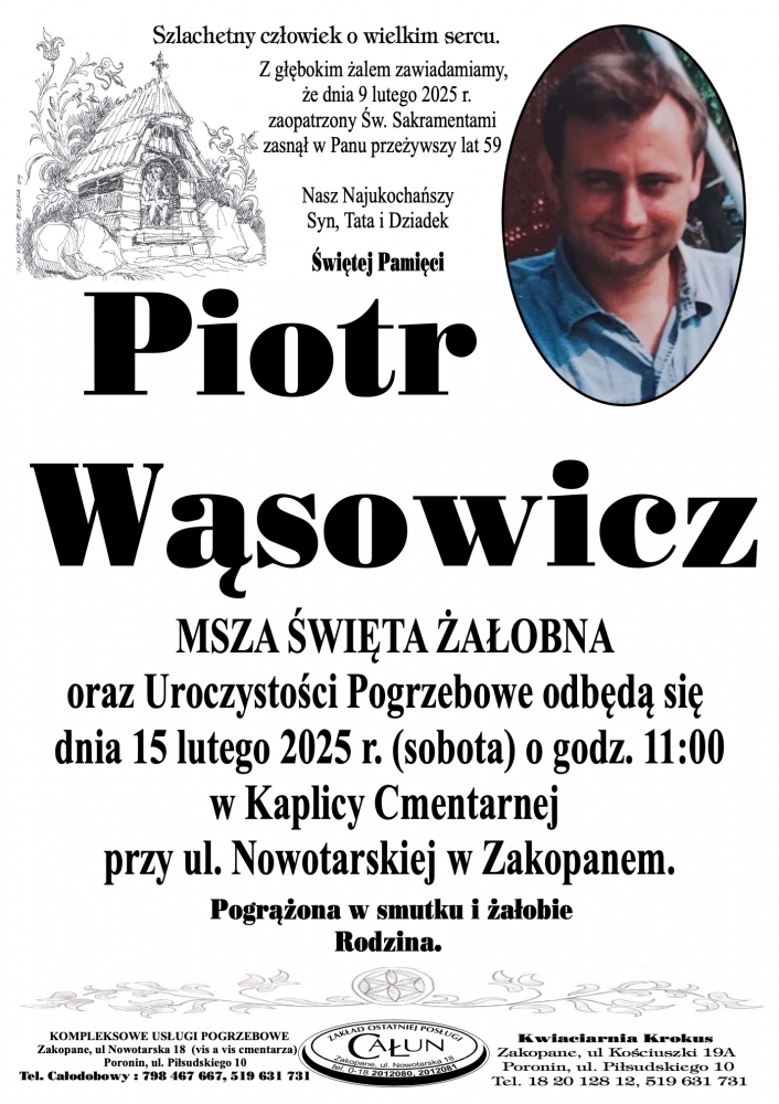 Piotr Wąsowicz - Nekrologi - podhale24.pl