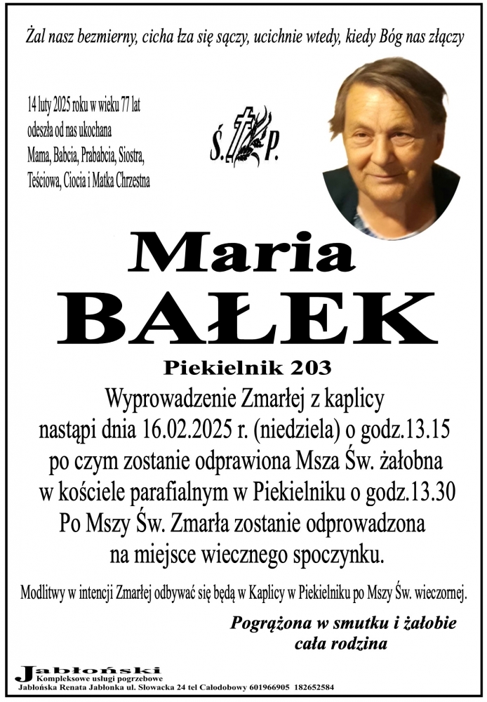 Maria Bałek - Nekrologi - podhale24.pl