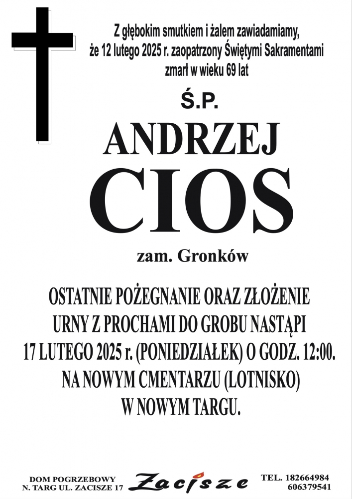 Podhale24.pl zastrzega sobie prawo do nie publikowania wspomnień, w szczególności tych nie związanych z profilem działu nekrologi, zawierających wulgaryzmy, wzywających do zachowań niezgodnych z prawem, obrażających osoby publiczne i prywatne, obrażających inne narodowości, rasy, religie itd, oraz te, bez możliwości telefonicznej lub mailowej weryfikacji ich autora.
