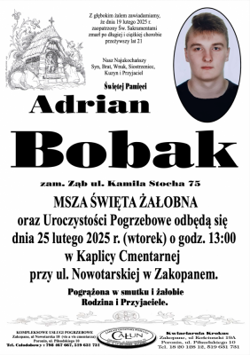 Podhale24.pl zastrzega sobie prawo do nie publikowania wspomnień, w szczególności tych nie związanych z profilem działu nekrologi, zawierających wulgaryzmy, wzywających do zachowań niezgodnych z prawem, obrażających osoby publiczne i prywatne, obrażających inne narodowości, rasy, religie itd, oraz te, bez możliwości telefonicznej lub mailowej weryfikacji ich autora.