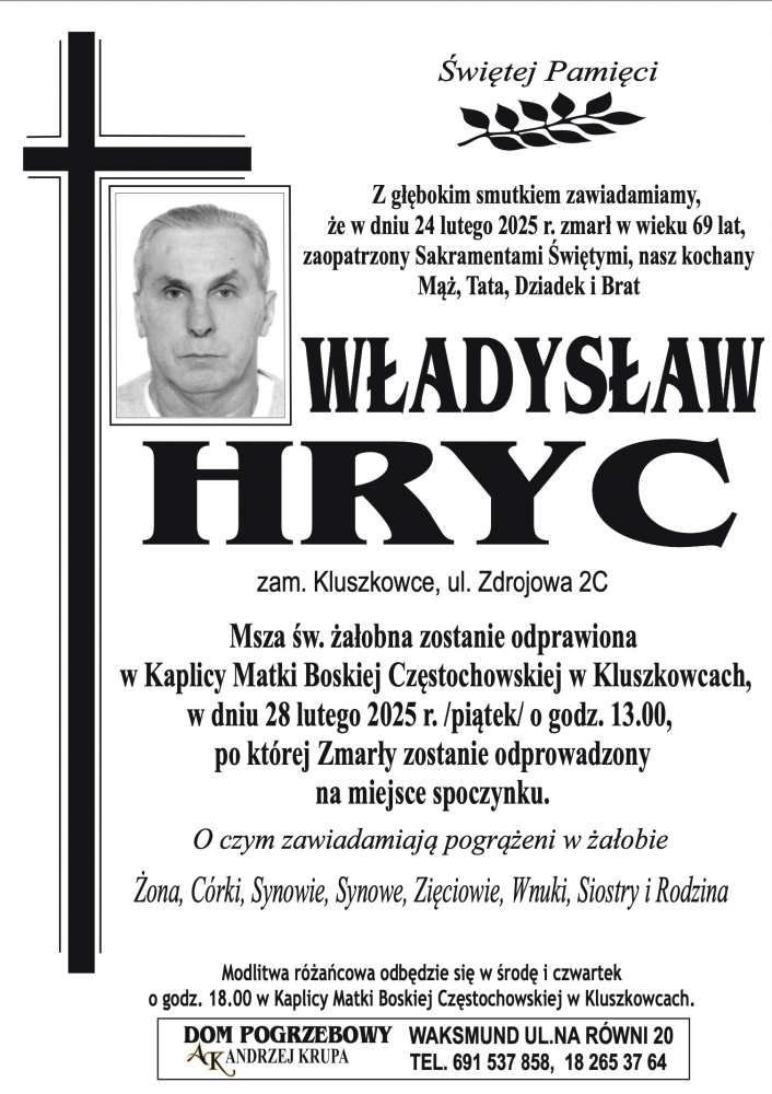 Podhale24.pl zastrzega sobie prawo do nie publikowania wspomnień, w szczególności tych nie związanych z profilem działu nekrologi, zawierających wulgaryzmy, wzywających do zachowań niezgodnych z prawem, obrażających osoby publiczne i prywatne, obrażających inne narodowości, rasy, religie itd, oraz te, bez możliwości telefonicznej lub mailowej weryfikacji ich autora.