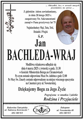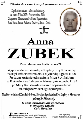 Podhale24.pl zastrzega sobie prawo do nie publikowania wspomnień, w szczególności tych nie związanych z profilem działu nekrologi, zawierających wulgaryzmy, wzywających do zachowań niezgodnych z prawem, obrażających osoby publiczne i prywatne, obrażających inne narodowości, rasy, religie itd, oraz te, bez możliwości telefonicznej lub mailowej weryfikacji ich autora.