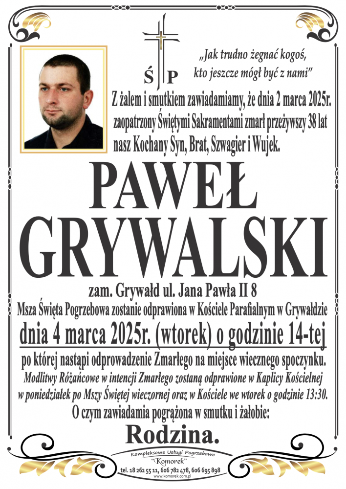 Paweł Grywalski - Nekrologi - podhale24.pl