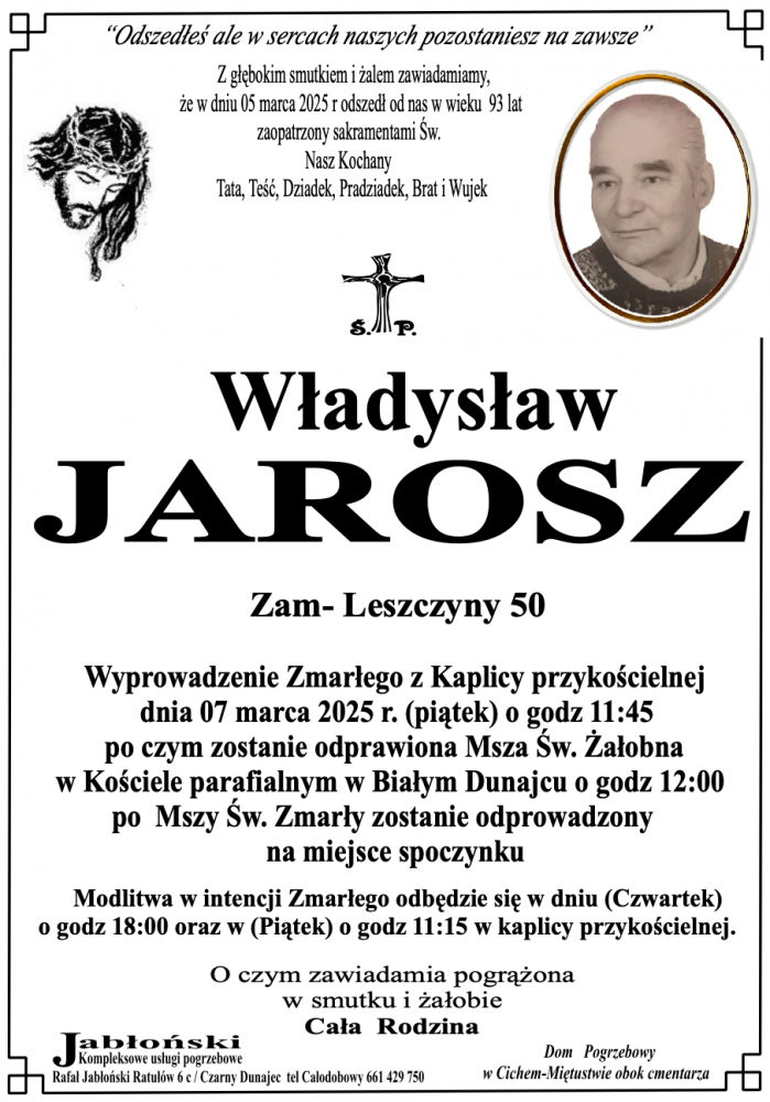 Władysław Jarosz - Nekrologi - podhale24.pl