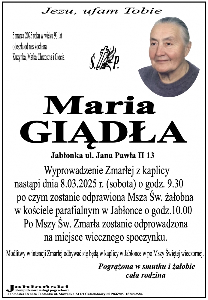 Podhale24.pl zastrzega sobie prawo do nie publikowania wspomnień, w szczególności tych nie związanych z profilem działu nekrologi, zawierających wulgaryzmy, wzywających do zachowań niezgodnych z prawem, obrażających osoby publiczne i prywatne, obrażających inne narodowości, rasy, religie itd, oraz te, bez możliwości telefonicznej lub mailowej weryfikacji ich autora.