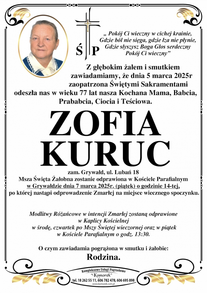 Zofia Kuruc - Nekrologi - podhale24.pl